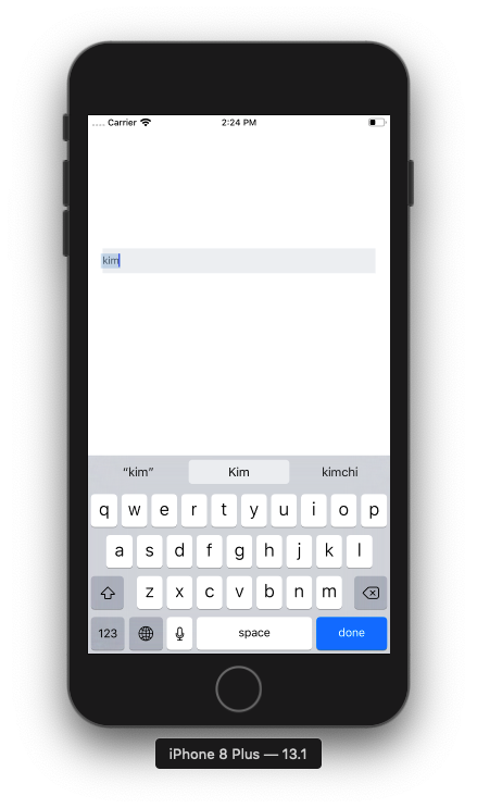 kim이라는 이름을 작성하고 키보드 하단에 있는 done(완료)를 누르면 키보드가 사라지게 하고 싶습니다.