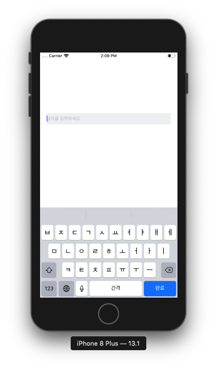 글자를 입력하려고 텍스트 필드를 탭 하면 아래와 같이 키보드가 나타납니다.