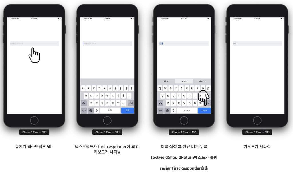 텍스트 필드를 탭하면 텍스트 필드는 first responder(최초반응자)가 됩니다.