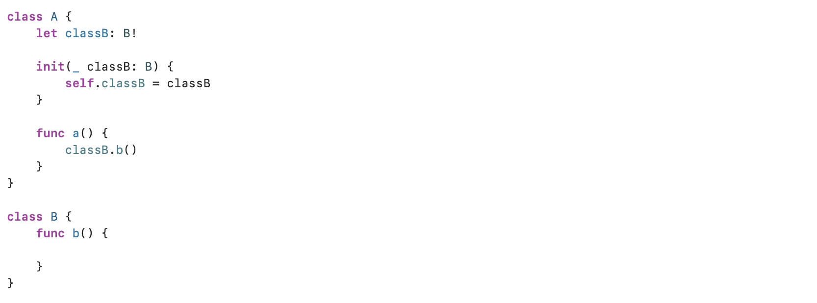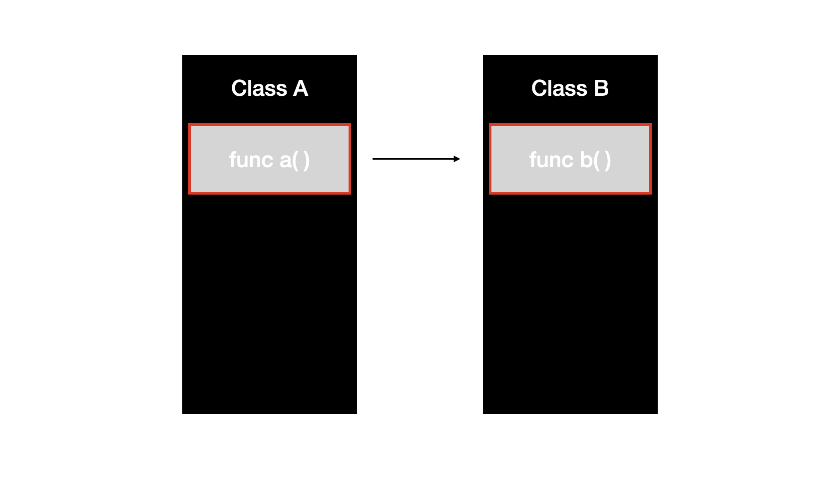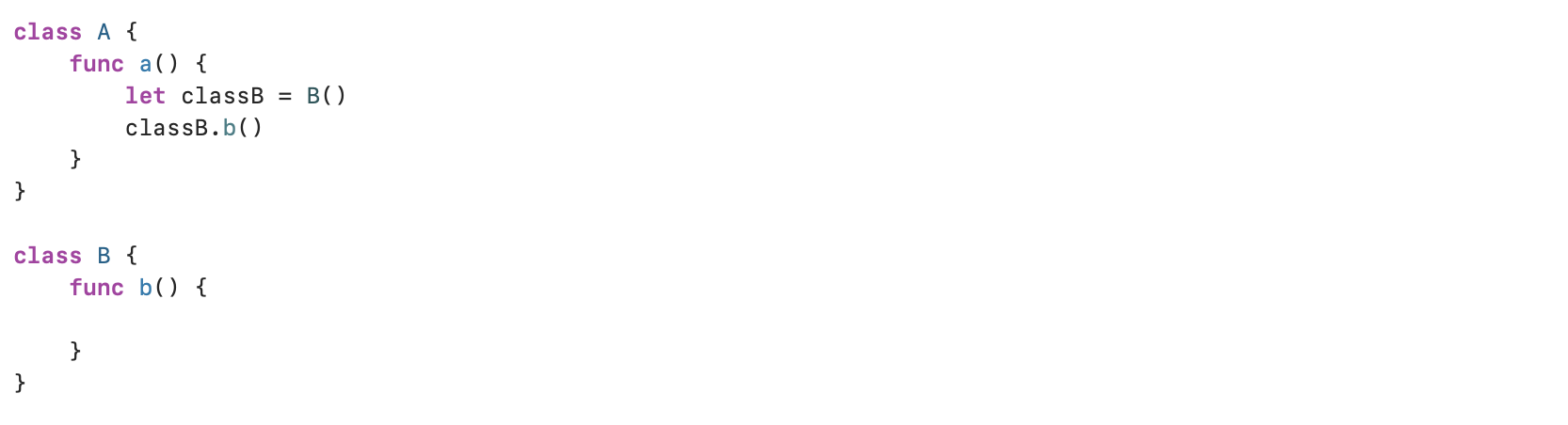 클래스 A에서 클래스 B를 생성해서 b 함수를 호출하기 때문에
