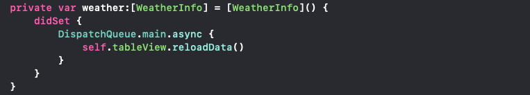 weather에 하나씩 append될 때마다 tableView가 리로드 됩니다.